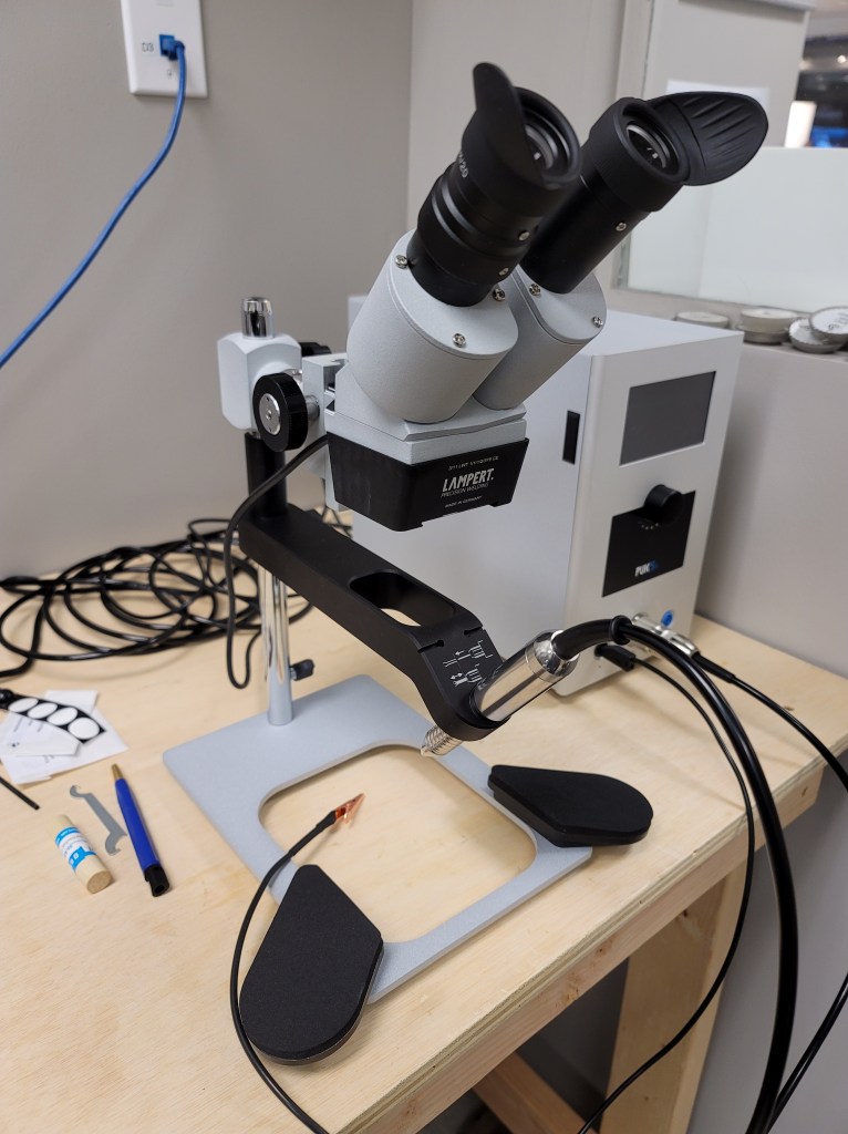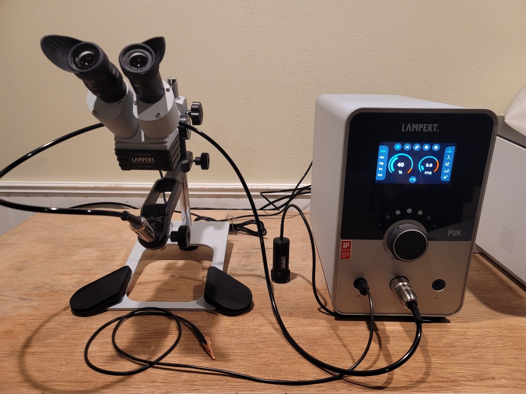 Once everything is unpacked it is immediately apparent that everything is extremely well built. The quality and finish is honestly as good as it gets. It’s obvious that Lampert has taken a lot of pride in producing this machine and it shows. The base power unit is quite heavy and the microscope stand is very solid and easy to adjust.