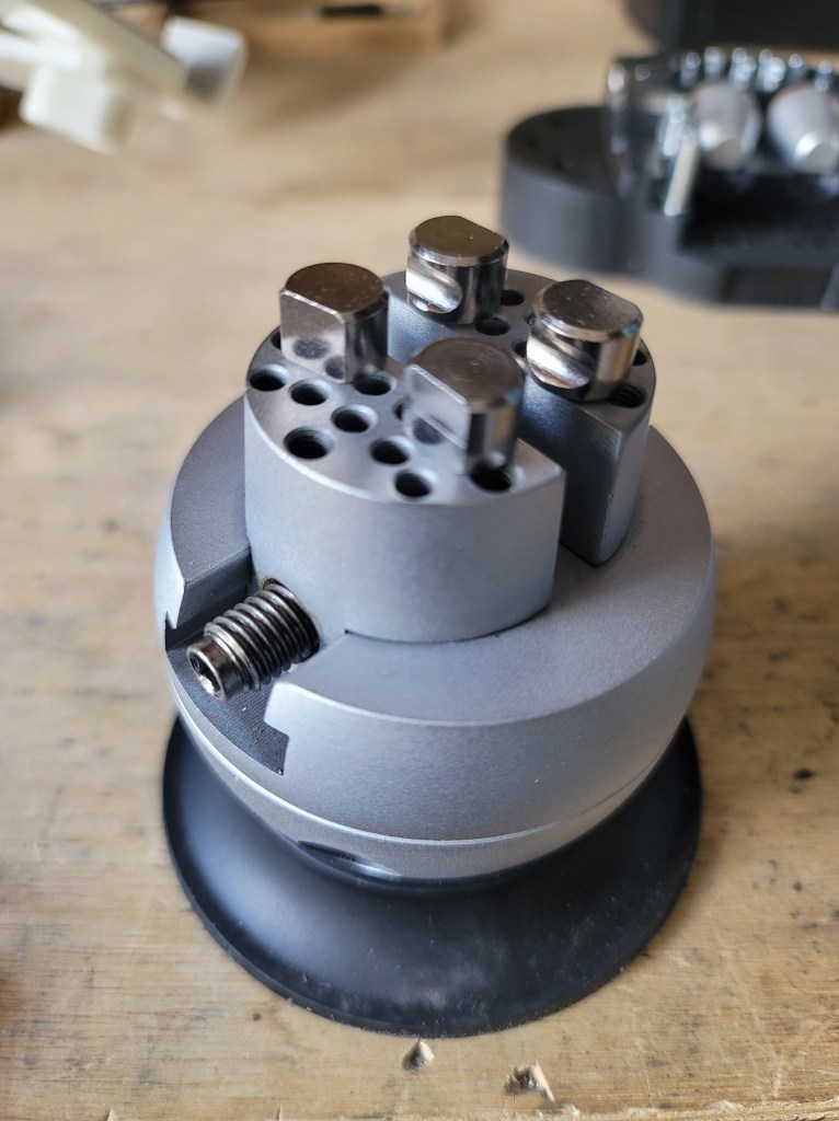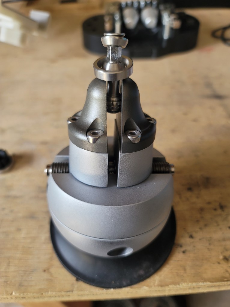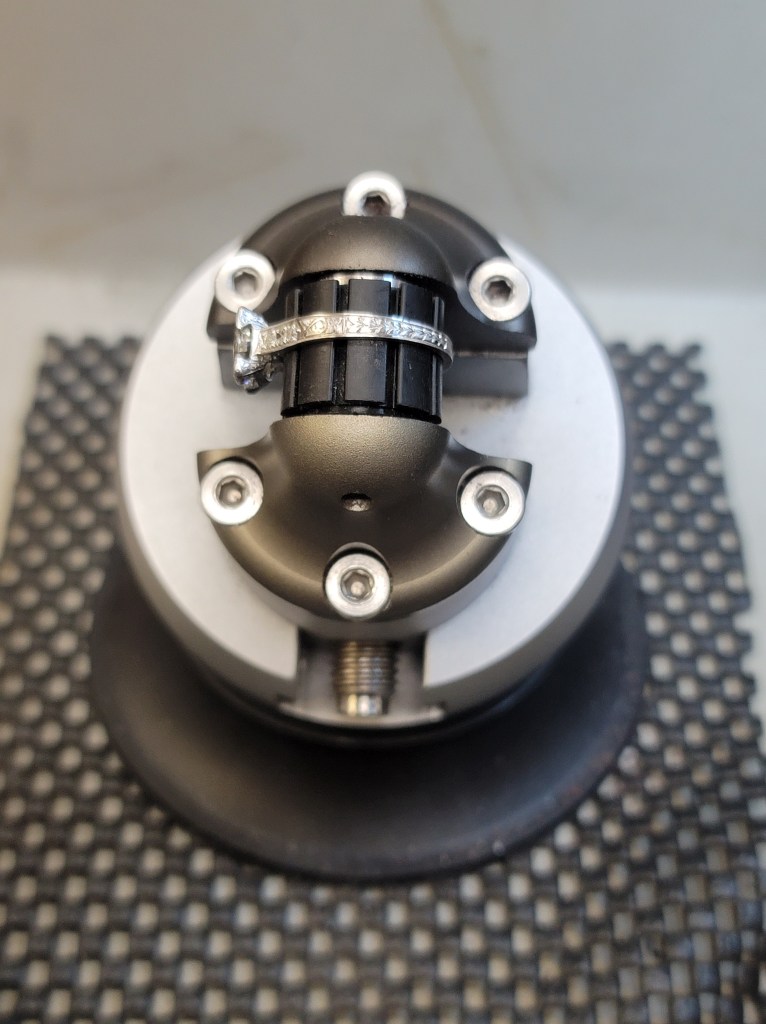I’ve been using a similar type of expanding ring collet setup for decades and it works quite well. The beauty of this is that it allows you to securely hold a ring in any position imaginable for engraving or stone setting. Overall it’s an extremely versatile setup and if you’re a jeweler I highly recommend getting the vise with this attachment.