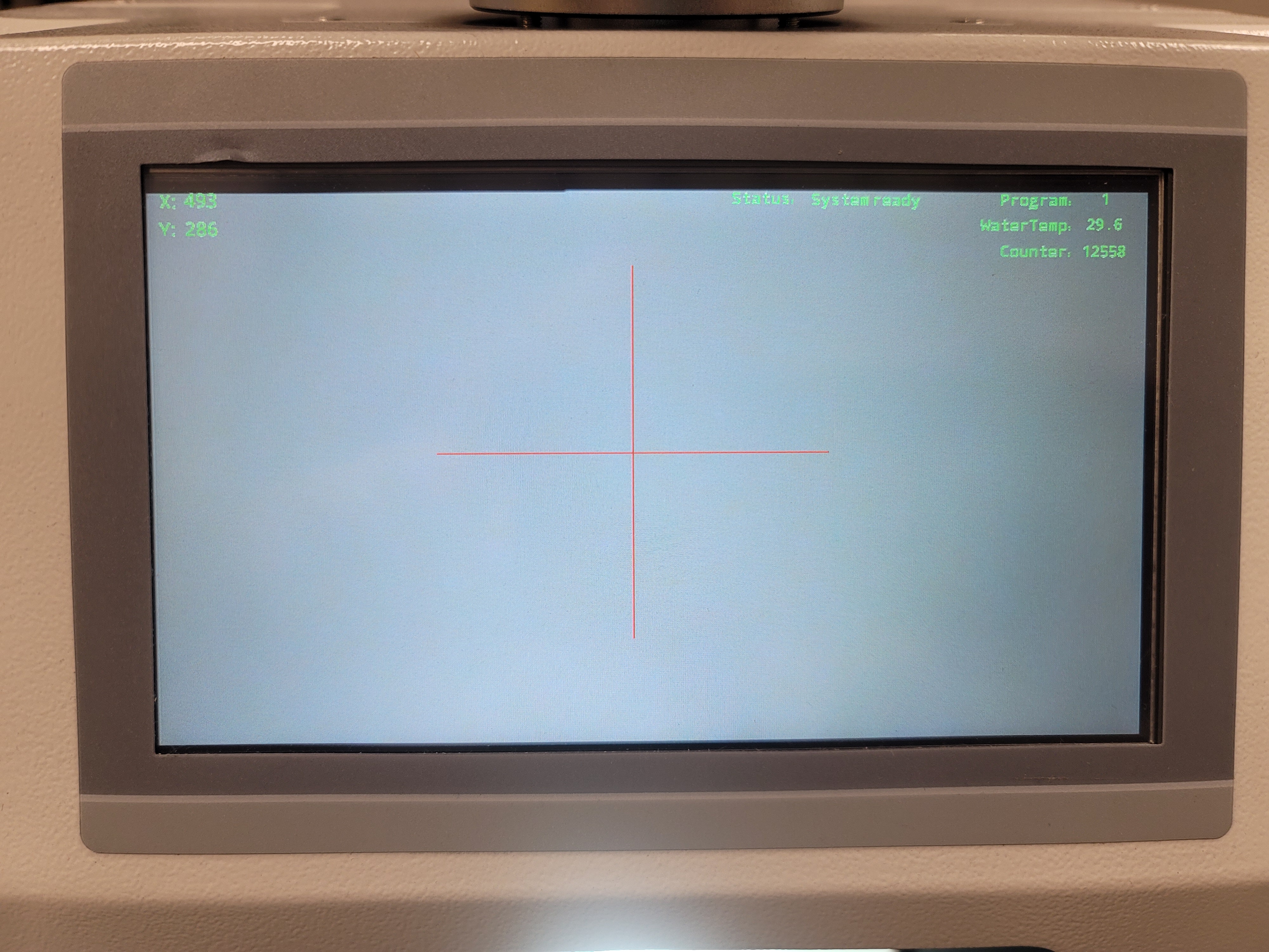 If you want to weld using the touchscreen instead of the microscope, you can just touch the screen to hide all of your power settings and only show the aiming reticle. There are buttons on the home screen that allow you to precisely position the aiming reticle so that it matches up exactly with the laser firing location- this is a really nice feature to have. You can also change the size and color of the aiming reticle in order to make it more visible with type of metal you are welding.